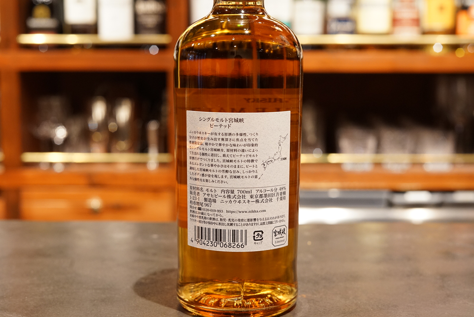 本来は華やかでフルーティな宮城峡を、敢えてピーテッドモルトのみを使用。宮城峡の個性を活かしつつもピートを加えることで宮城峡モルトの芳醇で軽やかな甘さの中にしっかりピートも味わえるバランスの良いウィスキーです。