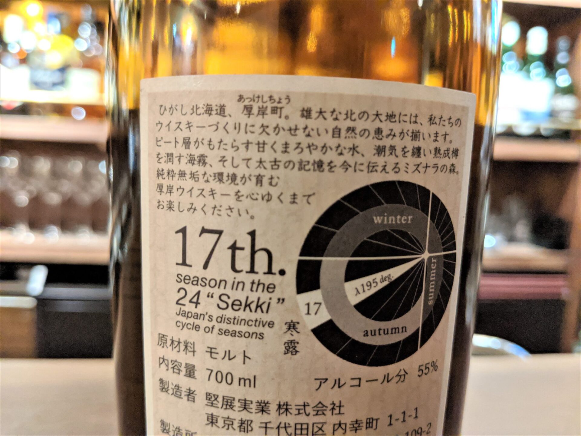 厚岸蒸留所では今回の寒露を皮切りに、年に3~4回のペースで計24商品を発売していく予定との事です。そのそれぞれに二十四節気の言葉を商品名として付けるのだということです。